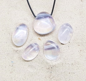 Dieser Trommelstein-Anhänger Angel Aura ist mit Silber bedampft und strahlt bei Sonneneinwirkung in den Regenbogenfarben.