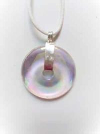 Eine wunderschöne Edelstein-Halskette glänzt in Regenbogenfarben: Bergkristall bedampft mit Platin, Stifthalter aus 925 Silber und dazu ein weißes Baumwollband. Der Name Angel Aura passt herrlich zu dieser Halskette.