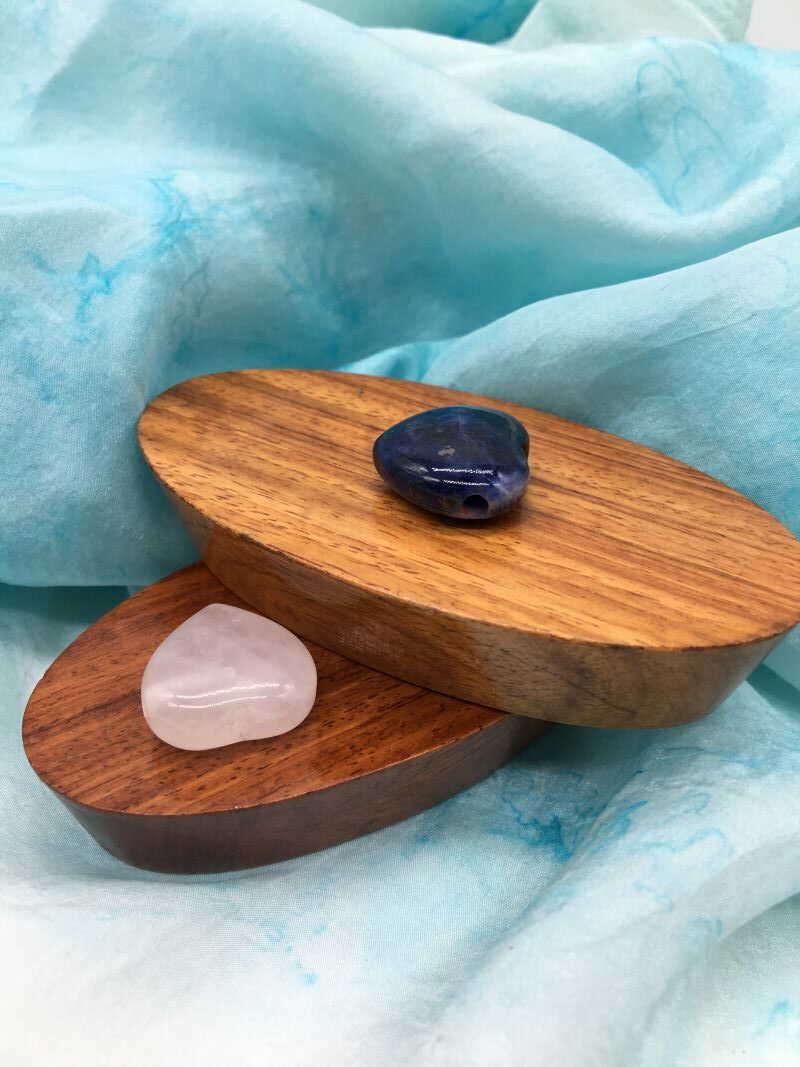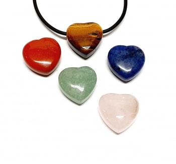 Diese Herz-Anhänger sind quer gebohrt – ohne Öse und verkaufe ich in verschiedenen Edelsteinsorten: Rosenquarz und Sodalith.